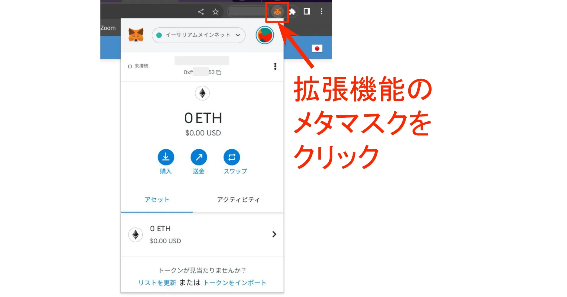 続いて、メタマスクにイーサリアムを送金する手順を解説します。