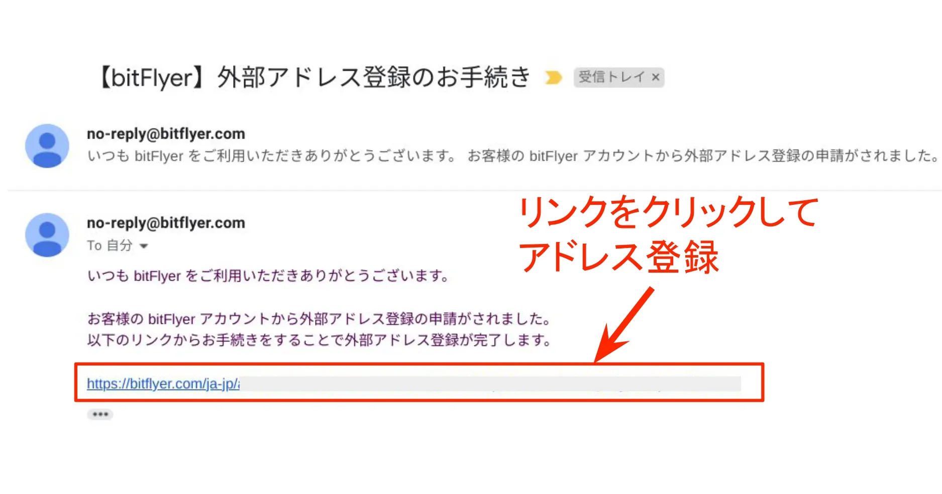 ビットフライヤーからメールが届いたら、登録リンクをクリックしましょう。