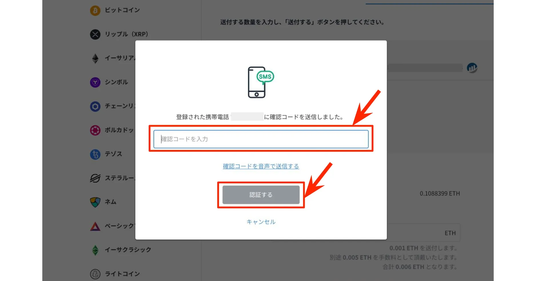 スマホに届いた二段階認証の認証コードを入力して「認証する」をクリックしましょう。