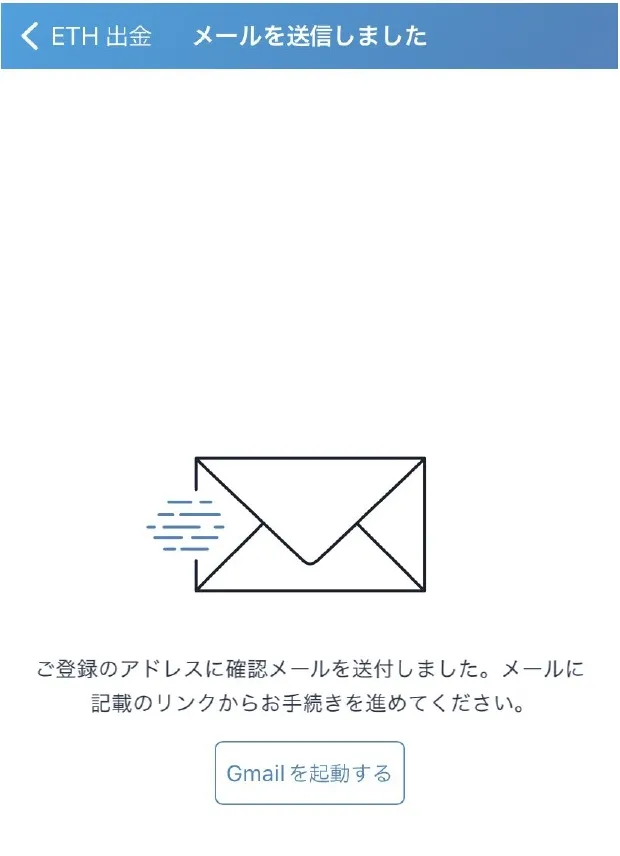 「0.001ETHの送付手続きを受け付けました」と表示され、ビットフライヤーから承認メールが届けば送金が完了します。