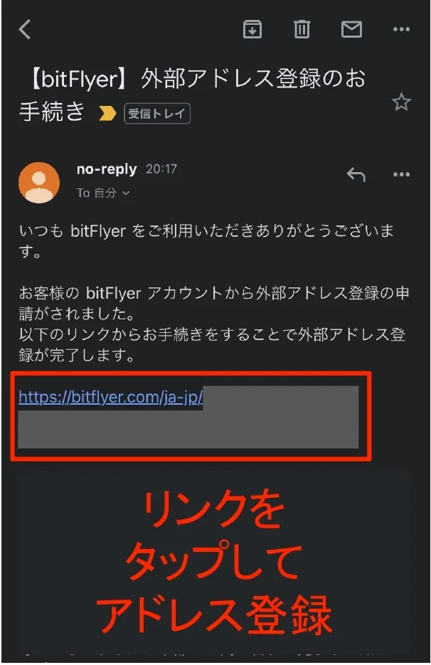 ビットフライヤーからメールが届いたら、登録リンクをタップしましょう。