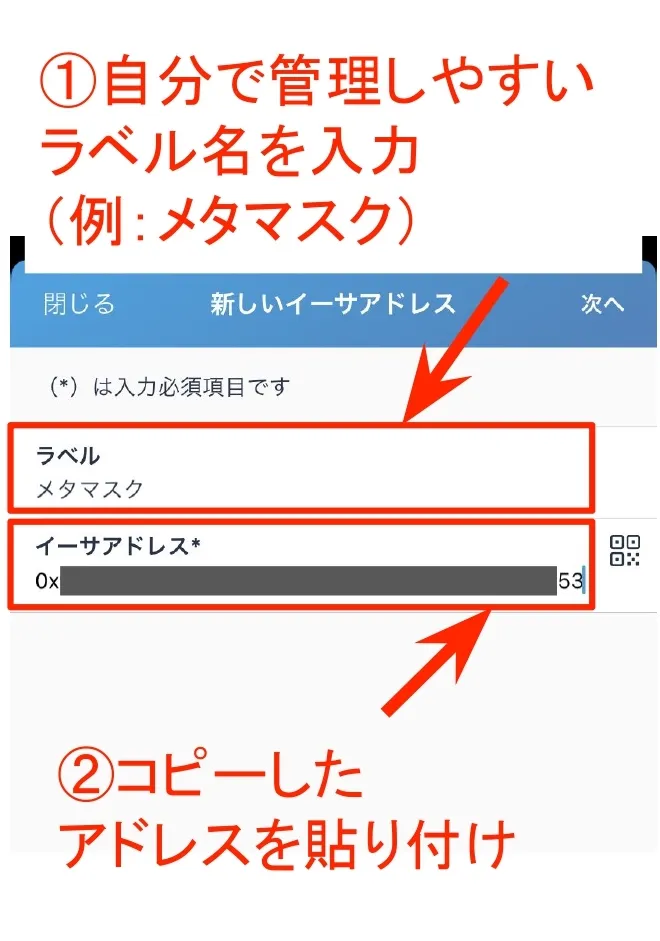 - ラベル名を入力(自分で管理しやすいラベル名 例:メタマスク)