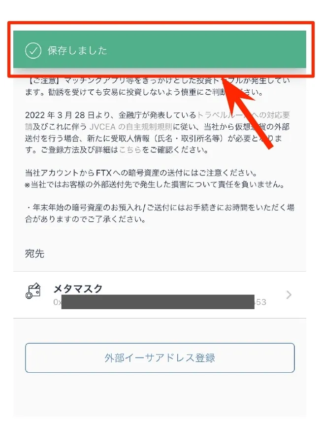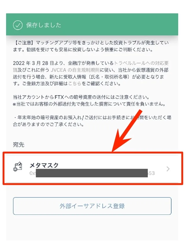 以上でメタマスクのウォレットアドレス登録が完了です。